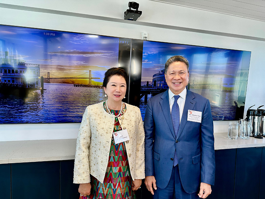 2024年9月23日正中午分,,,,,加州湾区委员会在位于其总部克拉马斯号(Klamath)顶层zoty中欧体育花园的主聚会室内,,,,,以一场温馨而庄重的午餐会,,,,,热情接待了柬埔寨副宰衡孙占托左右率领的代表团一行。。。。。zoty中欧体育集团董事局李俐代表董事长徐鹏(湾区委员会执行董事兼国际委员会主席)与湾区委员会经济研究院院长肖恩·伦道夫作为东道主配合主持接待了代表团一行,,,,,展现了湾区委员会对国际伙伴关系的重视与期待。。。。。