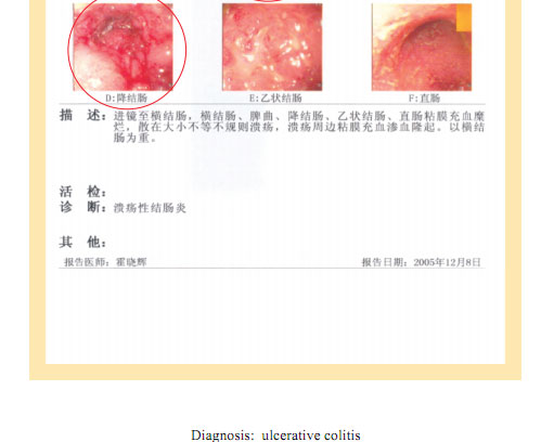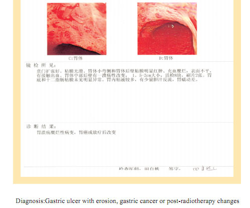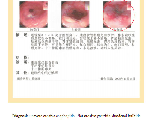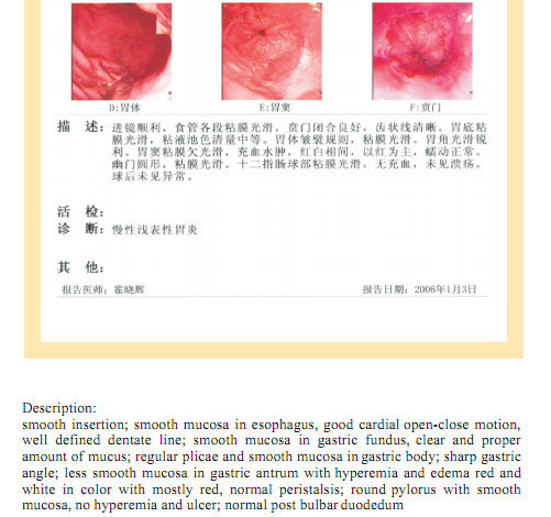Name: Gai, Gender: Female, Age: 54. She started the gastrointestinal regenerative restoration program in June 2007.After one year’s treatment, the gastrointestinal system are mostly regenerated and restored, the physical signs of mucosa demonstrates young and healthy state.