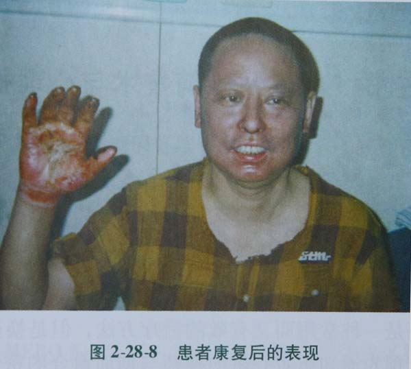 Ô½ÈÕ£¬£¬£¬£¬£¬£¬»¼ÕßÍ·Ãæ²¿Ö×ÕÍÏÔ×Å£¬£¬£¬£¬£¬£¬É¢ÔÚСˮð壬£¬£¬£¬£¬£¬²¿·Ö±íƤÍÑÂ䣬£¬£¬£¬£¬£¬»ùµ×ºì°×Ïà¼ä£¬£¬£¬£¬£¬£¬Í´¾õ»ºÂý£¬£¬£¬£¬£¬£¬±ÇëÉÕ½¹µ«°ÎëÓÐÍ´¾õ£¬£¬£¬£¬£¬£¬ÓÒÊÖ±íÆ¤ÍÑÂ䣬£¬£¬£¬£¬£¬ÖжÈÖ×ÕÍ£¬£¬£¬£¬£¬£¬Ô˶¯Õϰ­£¬£¬£¬£¬£¬£¬ÊÖÖ¸½¹ºÚËõ¶Ì£¬£¬£¬£¬£¬£¬ÊÖ±³³ÊÀ¯°×É«£¬£¬£¬£¬£¬£¬Í´¾õÏûÊÅ¡£¡£¡£¡£¡£¡£¾Ý´Ë£¬£¬£¬£¬£¬£¬¶Ô»¼Õß×ö³öÁ˽øÒ»²½Õï¶Ï£ºÍ·Ã沿¡¢ÓÒÊÖÉÕÉ˺ϲ¢Çá¶ÈÎüÈëÐÔËðÉË£¨×ÜÃæ»ýÔ¼6%£¬£¬£¬£¬£¬£¬Ç³¢ò¶ÈÔ¼2%¡¢Éî¢ò¶È3%¡¢Ç³¢ó¶È1%£©£¬£¬£¬£¬£¬£¬²¢È·Á¢ÕïÁƼƻ®£¬£¬£¬£¬£¬£¬¹æ·¶¸÷Ïî²Ù×÷ÊÖÒÕ£¬£¬£¬£¬£¬£¬»¼ÕßµÚ2Ì첡Çé¾ÍÓÐÁËÏÔןÃת£¬£¬£¬£¬£¬£¬Ë«ÑÛ¡¢¿Ú´½Ö×ÕÍÏÔ׿õÇᣬ£¬£¬£¬£¬£¬ÊÖÖ¸ÄÜÊʵ±Ô˶¯¡£¡£¡£¡£¡£¡£´´ÃæÓÚÉ˺óµÚ10ÌìÓúºÏ£¬£¬£¬£¬£¬£¬ÓÒÊÖ±³¡¢Ö¸±³µÄ´´ÃæÔÚÉ˺óµÚ16Ìì»ù±¾ÓúºÏ£¬£¬£¬£¬£¬£¬ÓÒÊÖ¹¦Ð§½«ÍêÈ«»Ö¸´£¨Í¼2ª²28ª²7£¬£¬£¬£¬£¬£¬Í¼2ª²28ª²8£©¡£¡£¡£¡£¡£¡£