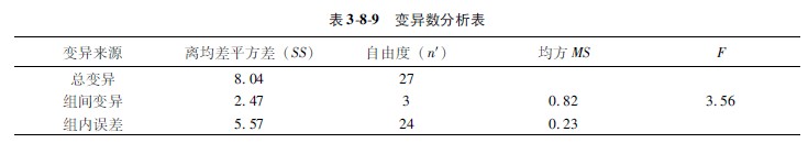 组间变异的自由度为n-1,,,, ,,,本题为4组,,,, ,,,即4-1=3 ;;; ;;;;;