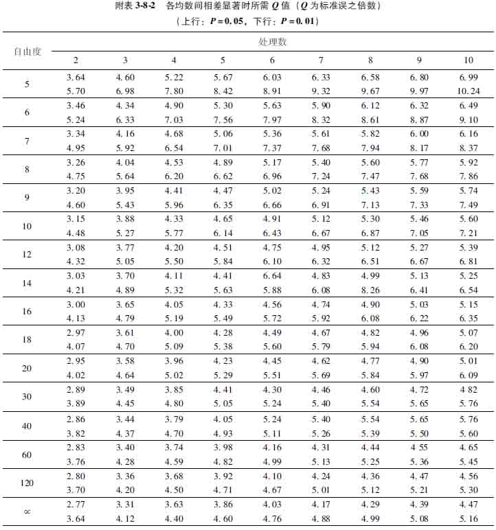 4确定各组均数相差显著时所需Q值:效果见表3811。。 。。。。。。