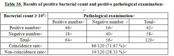 In our study, we made a bacterial count on the sub-eschar viable tissues and performed pathological examination of 120 animals with the results showing a linear correlation between bacterial count and positive rate of pathological examination. The positive rate of pathological examination increased as bacterial density did, and there was a positive relationship (P<0.005). Among 62 specimens showing bacterial count  105/g, 46 were were found positive in pathological examination with a positive rate of 74.2 %. Of 58 specimens showing bacterial count <105/g, 40 were found to be negative in pathological examination with a rate of 69 %. The coincidence rate of both diagnostic methods was 71.67 %. The statistical data demonstrated that if a bacterial count  105/g was used as the critical level in the diagnosis of burn wound invasive infection, there was a significant relationship between the two methods. Therefore, the results of this study suggested that bacterial count on sub-eschar viable tissue remained one of the feasible methods for the prediction and diagnosis of burn wound invasive infection. Although it directly reveals the invasive extent of burn wound invasive infection, pathological examination can give false-negative results due to the impact of many factors including sampling, section and staining techniques. Thus, we must keep in mind that pathological examination for the diagnosis of burn wound invasive infection has its limitations and should not be the sole criteria. Similarily, blood culture has its limitations in that it may result in a low positive rate and delay appearance [27]. Therefore, we conclude that bacterial count of sub-eschar viable tissue can still be used as one of the feasible methods in the early diagnosis of burn wound invasive infection.