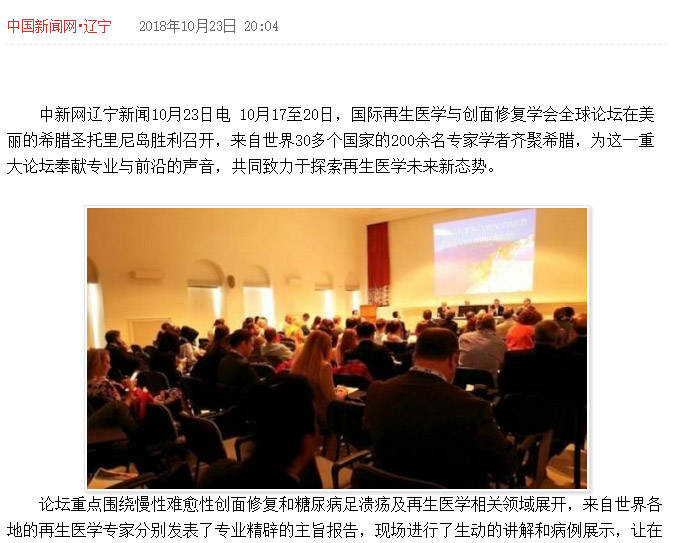 中新网:国际再生医学与创面修复学会全球论坛在希腊举行