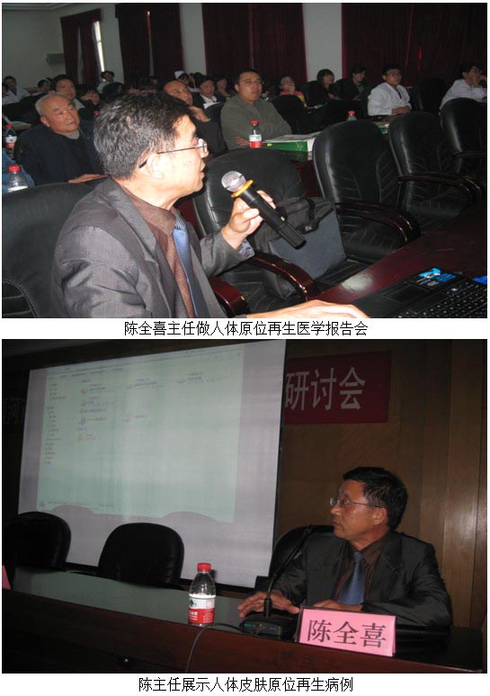 2011年9月26日下昼2点整,,,,,讲座在该院外科学术厅举行,,,,,该医院外科主任,,,,,省中西医团结学会、烧伤专业委员会副主任委员王秉真、漯河市中心医院外科主任钱红军主持了学术讲座,,,,,在学术讲座中,,,,,陈主任首先向参会全体医护职员先容了我国著名生命科学家徐荣祥教授。。。 。。。然后团结大宗的临床病例图片,,,,,主要针对差别水平的烧伤后期创面及种种难愈性创伤、溃疡、压疮、疤痕等疾病的预防及治疗要领和注重事项。。。 。。。对创伤性骨病“慢性骨髓炎”的临床治疗也举行了认真详尽地解说,,,,,并解答了医师在处置惩罚骨髓炎中遇到的疑难问题;;;; ;;;;向学员们解说微粒皮莳植术在创伤、烧伤、溃疡创面与湿润烧伤膏团结治疗的病例,,,,,展示了莳植皮浆的图像资料,,,,,认真解答了医护职员提出的问题。。。 。。。