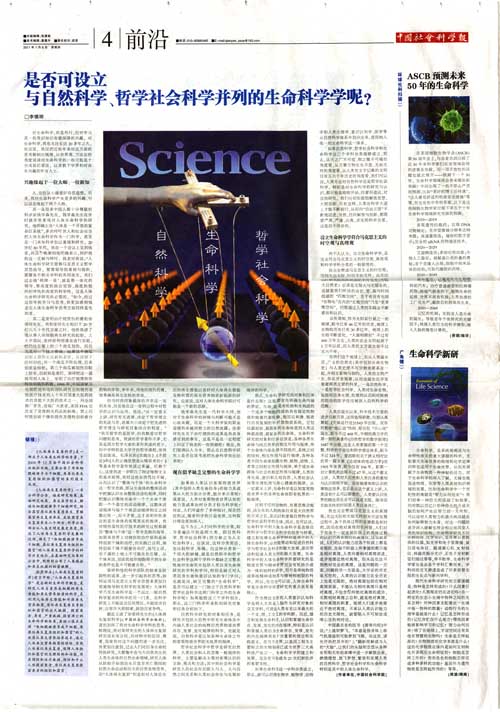 ¡¶ÖйúÉç»á¿ÆÑ§±¨¡·£ºÊÇ·ñ¿ÉÉèÁ¢Óë×ÔÈ»¿ÆÑ§¡¢ÕÜѧÉç»á¿ÆÑ§²¢ÁеÄÉúÃü¿ÆÑ§Ñ§ÄØ£¿£¿£¿£¿£¿