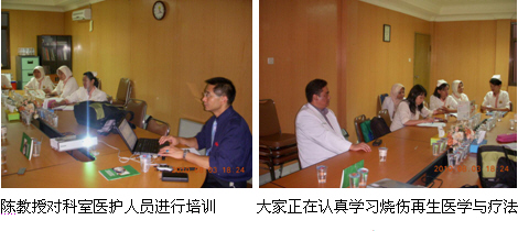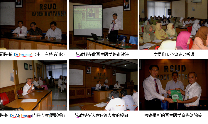 7、8月13日上午9时,,,,,,由医师学会主理的Jambi市级烧伤再生医学临床培训班(省级继续教育项目,,,,,,学分6分)在Raden Mattaher hospital的学术报告厅里举行,,,,,,来自全是主要的4家政府医院和其它10多家私营医院的80多名临床医师、护士加入了这次培训会。。。。 。。培训会由Raden Mattaher hospital副院长Dr.Imanuel主持,,,,,,医院大外科主任Dr. Aziz先容了应用MEBO治疗褥疮的临床履历,,,,,,陈教授则应邀作了“烧伤再生医学与疗法在烧伤、创疡疾病治疗的临床规范应用”的培训演讲,,,,,,很受各人的欢迎,,,,,,抵达了较理想的培训效果。。。。 。。
