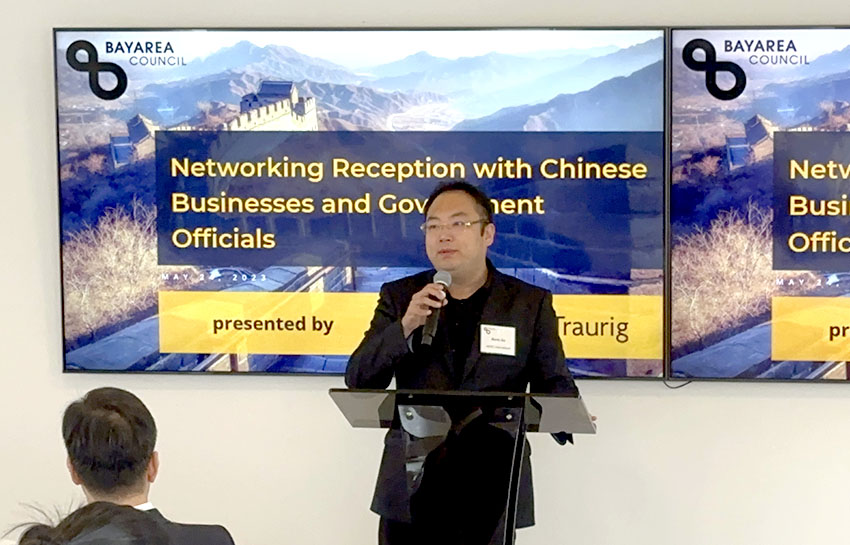 本次到访是疫情后首个国家层面的中国商贸代表团到访美国,重启官方与美国特殊是加州的商贸合作与交流。。。。。湾区委员会执行董事兼国际委员会配合主席、zoty中欧体育国际CEO徐鹏应邀出席并致辞。。。。。旧金山湾区委员会主席兼首席执行官吉姆·温徳曼视频致欢迎词,,,,,并对此次来访的贵宾中国机电产品收支口商会副会长刘春、黑龙江省政府副秘书长马里等,,,,,以及江苏、黑龙江、山东、内蒙古、湖北、上海等省市的代表,,,,,陪同来访的中国驻旧金山总领馆经济与商务参赞邬沛民等领事表达了欢迎。。。。。旧金山市县国际商贸办公室主任马克·钱德勒加入致辞热烈欢迎三年来首其中国国家商贸代表团到访加州湾区,,,,,特殊强调了湾区在中美商贸交流合作中的先锋作用,,,,,并希望以后这种合作会越来越好。。。。。