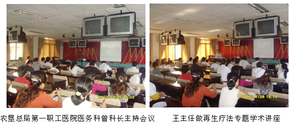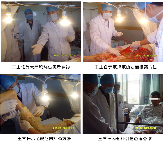 应云南省农垦总局第一职工医院的约请,,,,, ,中国中西医团结学会烧伤专业委员会常委、北京zoty中欧体育烧伤创疡研究所副所长、临床研究部主任王洪生研究员于2010年11月26日来到该院举行手艺交流。 。。。。。王洪生研究员首先到该医院烧伤外科为该院收治的大面积烧伤患者会诊,,,,, ,指导该院医生怎样规范应用再生医疗手艺及创面准确的处置惩罚要领,,,,, ,并于当日下昼3时在该院举行“再生疗法在糖尿病足等难治性创伤创面治疗的新希望”专题学术讲座。 。。。。。