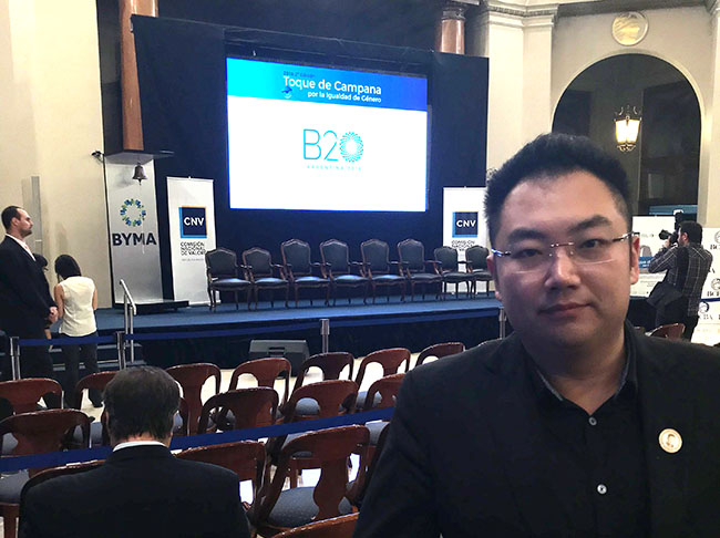 2018年3月7日上午,,,,,,,团结国天下妇女节敲钟仪式在阿根廷首都布宜诺斯艾利斯证交所举行,,,,,,,zoty中欧体育集团总裁徐鹏应邀出席本次运动。。 。。。。这次运动是由团结国妇女组织(UN Women)和二十国集团商业论坛(B20)主理,,,,,,,在今年B20峰会主理国阿根廷首都庆祝国际妇女节,,,,,,,旨在借此提高对民间社会在增进男女一律实现团结国第五项可一连生长目的中能起主要作用的熟悉。。 。。。。