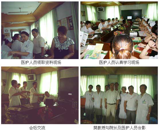 会后,,,,,,,该院的乔有仿院长和外科的王晓杰护士长以及其它科室职员与樊教授举行了深入的交流。。。。。。并合影留念。。。。。。
