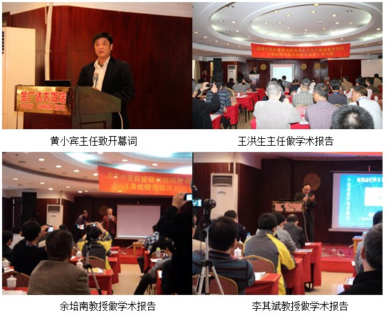 在本次学术聚会上,,,,,余培南教授以“银环蛇咬伤呼吸阻止的抢救”,,,,,李其斌教授以“毒蛇咬伤中毒机理及其救治”,,,,,福建省人民医院重症监护中心郑文贺副教授以“毒蛇咬伤重症患者的器官支持”,,,,,黄小宾主任以“蛇伤火毒型论治、黄守林治疗蛇伤履历节选”为题先后做了专题报告,,,,,《蛇志》杂志执行副主编蓝海副教授也作了专题报告,,,,,最后,,,,,大会完成预定议程后在团结、协调、祥和的气氛中竣事。。。。。