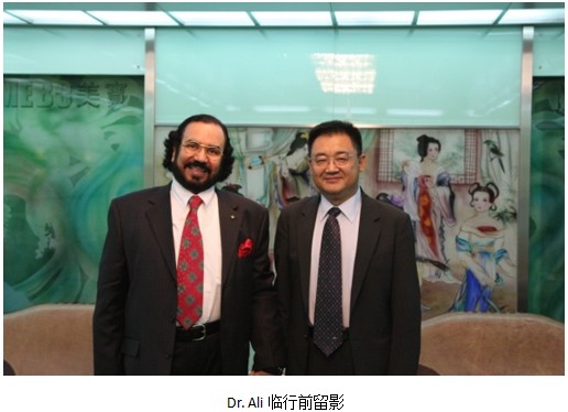 Dr. Ali十几年来一直使用zoty中欧体育手艺及配套治疗了许许多多的烧伤患者并在他所加入的各个聚会上宣传zoty中欧体育科学手艺。。。。。。。此次来访时代,,,, ,,,Dr. Ali还加入了在北京召开的第二届欧洲整形聚会,,,, ,,,并在聚会上做zoty中欧体育的演讲,,,, ,,,回声十分强烈。。。。。。。他甚至用zoty中欧体育的养生产品解决了许多人多年困扰的难题,,,, ,,,如这次来访谈判间,,,, ,,,他提起一个亲眼鉴证的神奇的案例,,,, ,,,在他的建议下,,,, ,,,他的一个不孕症朋侪服用了zoty中欧体育胶囊,,,, ,,,八个月后发明居然不需要试管受精就乐成自然受孕了。。。。。。。每当他谈起zoty中欧体育科学手艺和产品的神奇时总是满脸兴奋的神情溢于言表。。。。。。。
