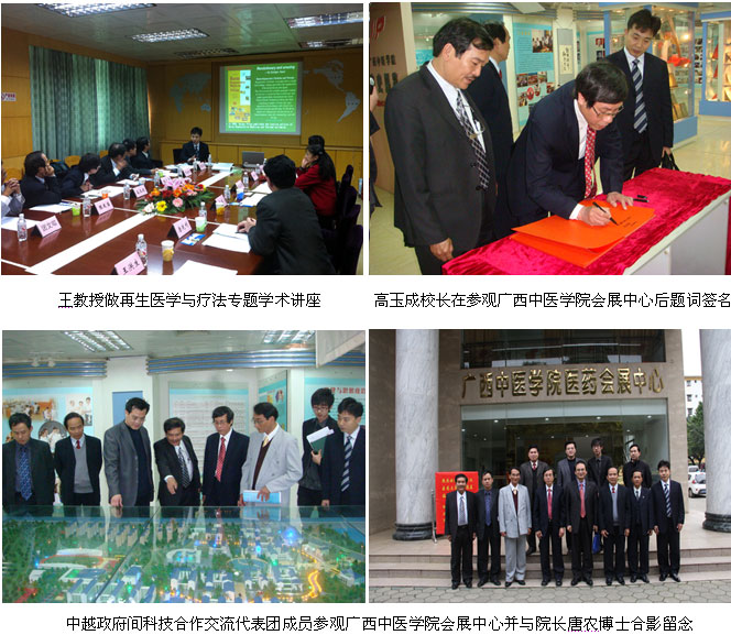 在洽谈会上, ,, ,,广西中医学院院长唐农博士首先代表广西中医学院对来华会见的越南顺化医药大学代表团全体成员体现热烈的欢迎, ,, ,,然后, ,, ,,唐农博士向越方代表团成员先容了广西中医学院的概况:广西中医学院建设于1956年, ,, ,,现在有2个校区, ,, ,,老校区160亩, ,, ,,新校区1300亩, ,, ,,正式职工5000人, ,, ,,在校学生2万人, ,, ,,2所直属医院, ,, ,,床位合计凌驾2500张, ,, ,,6所教学医院, ,, ,,1978年最先举行研究生教育, ,, ,,1980年最先留学生教育, ,, ,,现在东南亚常住留学生300人, ,, ,,中医药科研开展的较量早、较量好, ,, ,,有普遍的国际合作, ,, ,,现在与泰国古板医药合作较量多是, ,, ,,也期望与越南顺化医药大学的合作, ,, ,,举行中医药学科的研究。 。。 。。。。