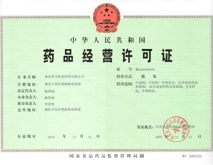 廊坊zoty中欧体育医药谋划有限公司在基地全体员工的配合起劲下,,, ,,在集团董事局的眷注和指导下,,, ,,于2005年12月13日顺遂通过了药品监视管理局的药品谋划允许证的验收检查。。。。。。。并于2005年12月31日取得药品谋划允许证。。。。。。。这标记着廊坊zoty中欧体育基地凭证zoty中欧体育国际集国的总体妄想,,, ,,向GSP谋划偏向迈出了乐成的第一步。。。。。。。