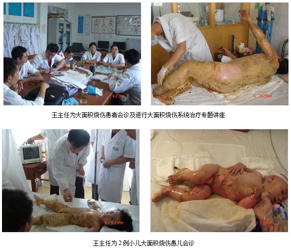 在该医院会诊时代, ,,,,,,王主任为让该医院相关科室的专家及医护职员掌握规范的烧伤皮肤原位再生回复手艺在大面积烧伤的规范创面及全身综合治疗手艺, ,,,,,,使用此次会诊的时机, ,,,,,,对该院骨科、烧伤科的专家及医护职员举行了“烧伤皮肤原位再生回复手艺在重度以上烧伤全身综合治疗要点”专题讲座, ,,,,,,会后王主任还不辞辛勤的亲自为病人举行换药, ,,,,,,向医护职员希望示规范的创面处置惩罚要领。 。。 。。。