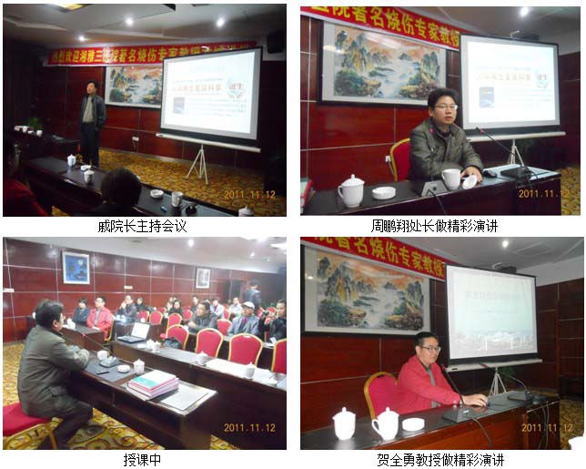 2011年11月12日 ,,,,,,湖南省医保局工伤包管处周鹏翔处长、中南大学湘雅三医院烧伤整形科贺全勇教授、烧伤科护士长卜平元、中国中西医团结学会烧伤专业委员会金党军教授等再生医学专家应湘乡市的约请到该医院做“人体再生回复科学”学术交流。。 。。。。。。贺全勇教授重点先容了差别皮肤创面的处置惩罚原则和注重事项;; ;;;;周鹏翔处长重点先容了人体再生回复科学的基本理论;; ;;;;卜平元护士长先容了危重烧伤病人的照顾护士;; ;;;;金党军教授作了人体再生回复科学在多学科的临床应用学术讲座。。 。。。。。。