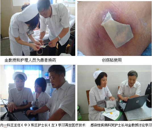 8月10日,,,, ,,,金教授走访了当阳市人民医院,,,, ,,,该院始建于1949年,,,, ,,,座落在三国古战场长坂坡下,,,, ,,,是当阳墟市医疗、教学、科研于一体的规模最大的综合性医院、当阳市医疗照顾护士手艺指导中心、抢救中心、国家二级甲等医院、爱婴医院、国际紧抢救援网络医院。。。 。。。医院占地35422平方米,,,, ,,,开放病床328张,近8年一连被省计统计局授予“湖北省医院系统百强单位”、宜昌市双文明单位、宜昌市树模医院、当阳市双文明单位、十星级单位、花园式单位。。。 。。。抵达了“人有专长、科有重点,,,, ,,,院有特色”的现代化县(市)级医院名堂。。。 。。。金教授走访该院心内科时,,,, ,,,王桂芳护士长正给一患者使用zoty中欧体育创疡贴换药,,,, ,,,该患者患有椎盘压缩性骨折,,,, ,,,左右骶棘处溃疡,,,, ,,,不易翻身。。。 。。。王桂芳护士长向金教授先容该患治疗前溃疡面较深,,,, ,,,在应用创疡贴治疗后,,,, ,,,现在新鲜的肉芽组织已完善泛起眼前,,,, ,,,在场的医生无不叹息创疡贴优异的治疗效果。。。 。。。随后,,,, ,,,金教授通过幻灯片向心内科王护士长和科室王主任,,,, ,,,熏染性疾病科贺护士长周全地先容了再生医疗手艺在褥疮、创伤、溃疡等创面的临床应用。。。 。。。王护士长也就临床中遇到的一些问题与金教授举行了深入地交流,,,, ,,,并体现以后会将这项好手艺在科室进一步推广应用,,,, ,,,造福更多患者。。。 。。。