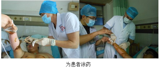 5月18号在前两天学习旅行基础之上,, ,,,新西兰一行人终于最先了再生医疗手艺的实践。。。。。。在刘医生的指导下,, ,,,新西兰医生护士迫缺乏待的最先了实践操作,, ,,,其中包括深二度创面换药流程,, ,,,创面整理标准流程,, ,,,腐皮去除时机与要领,, ,,,涂药原则等,, ,,,同时还包括糖尿病足创面换药流程,, ,,,注重事项等操作规范。。。。。。在此时代又旅行了新入院金属热液大面积烫伤患者的初期处置惩罚包括深度创面的耕作减张术等通例处置惩罚原则。。。。。。通过实践医生护士更深刻的体会到了再生医疗手艺在减轻患者痛苦与经济肩负方面的优越性与治疗难愈性创面的奇异性等优点。。。。。。