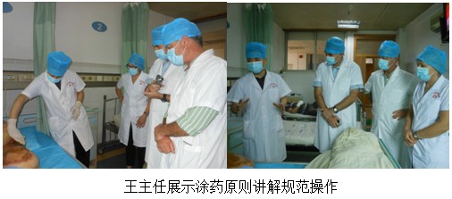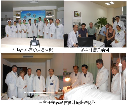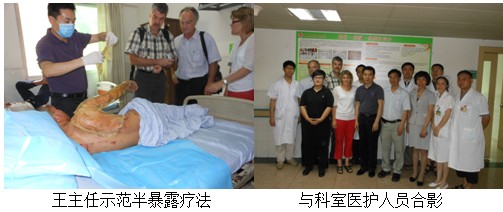 5月21号一行人在中国中西医团结学会烧伤专业委员会主任委员,, ,,,北京烧伤创疡研究所副所长,, ,,,中国烧伤创疡杂志社常务副主编王洪生教授的向导下举行了进一步的学习,, ,,,王教授掉臂舟车劳累亲自为新西兰医生护士解说展示了差别创面的处置惩罚规范,, ,,,注重事项并仔细周全的回覆了所有历程中提出的问题。。。。。。