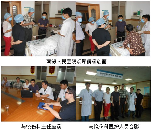5月22号上午王教授又驱车向导新西兰一行人来到了中山市黄埔人民医院举行旅行并受到了医院向导以及皮肤美容科主任的热烈欢迎。。。。。。在皮肤科主任对医院整体先容后,, ,,,一行人旅行了烧伤科病房,, ,,,历程中王教授又针对差别病例举行了操作展示并耐心详尽的回覆了医生护士提出的所有问题。。。。。。下昼一行人又转站来到了佛山南海人民医院烧伤科,, ,,,科室由于起劲开展再生医疗手艺使得大面积烧伤患者病死率显着镌汰。。。。。。近年来又一直扩大了应用规模扩展到了褥疮与糖尿病足等创面的应用也取得了很是好的疗效。。。。。。