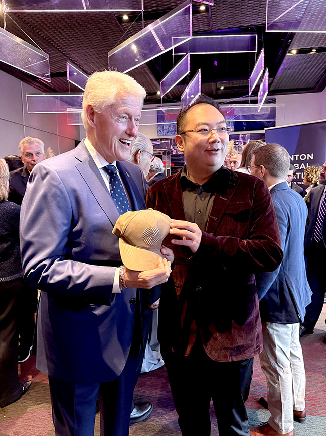 共续APEC传承 ,,,, ,zoty中欧体育集团董事局主席徐鹏向克林顿赠予APEC2024帽子