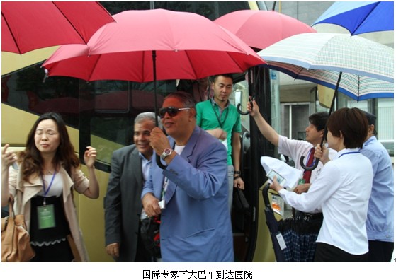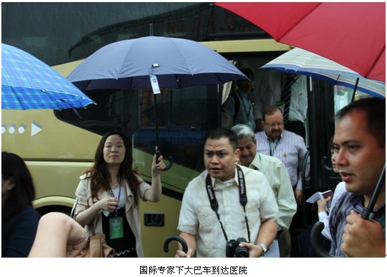 24日9时许,,, ,,,国际专家们乘坐大巴车抵达南通市第三人民医院,,, ,,,此时天上下起小雨,,, ,,,但专家们的旅行热情依然高涨。。 。。。 。。。