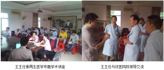 2012年10月18日,,,,,,,应阳江市泛爱医院约请,,,,,,,中国中西医团结学会烧伤专业委员会常委兼秘书、《中国烧伤创疡》杂志副总编辑、北京zoty中欧体育烧伤创疡研究所副所长、临床部主任王洪生研究员在该院聚会室举行了“再生回复疗法在烧伤及难愈性创疡创面治疗新希望”专题临床学术讲座 。。。。。。当天的学术讲座由该院梁副院长主持,,,,,,,此次学术讲座针对性强,,,,,,,对多科室科医护职员举行了较为系统和周全的烧伤、创疡和疤痕治疗的再生医学手艺培训,,,,,,,特殊是难愈性创面的修复及治疗,,,,,,,王主任团结临床多种创面病例展示精彩的解说了再生医疗手艺,,,,,,,通俗易懂 。。。。。。该次讲座对进一步推进并规范医院的创面治疗手艺,,,,,,,提高创面病人的救治水平起到了起劲和要害的作用,,,,,,,参会职员都反应是一次很是难堪的交流和学习时机 。。。。。。