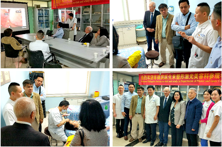 在湖南省人民医院激光整形科,,, ,,,,,几位医生听取了谭军教授关于激光整形方面的履历分享并与谭军教授就再生医疗手艺应用于激光整形术后创面修复管理方面的问题举行了讨论,,, ,,,,,Dr. Oppus Glenn Eduard, Dr. Mapayo Enriquez Arnulfo 提出了其在激光整形方面的问题,,, ,,,,,谭军教授团结病例举行了悉心解说与履历分享,,, ,,,,,并旅行了整形激光美容科的病房,,, ,,,,,几位医生为再生医学手艺团结整形激光美容在创面修复治疗与管理方面赞叹不已。。。。。。。。