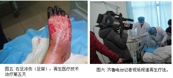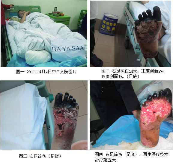 蒙古国20岁小伙子巴亚萨(音译)是一名大二学生,,,,, ,2011年3月22日,,,,, ,蒙古下了一场大雪,,,,, ,巴亚萨在户外做事时右脚被冻伤 。。。。。12天后,,,,, ,巴亚萨的脚掌、脚背溃烂,,,,, ,5个脚趾都酿成玄色,,,,, ,外地医生建议截肢,,,,, ,巴亚萨家人体现不可接受 。。。。。巴亚萨有一位亲戚在中国读博士,,,,, ,2011年4月3日,,,,, ,她通过“王广顺好医生在线”网站得知106医院正在推广应用再生医疗手艺,,,,, ,能治疗小伙子的右脚,,,,, ,可以不截肢 。。。。。4月4日早上,,,,, ,巴亚萨在母亲陪同下从乌兰巴托乘飞机来到济南106医院 。。。。。在各媒体热心资助下蒙语翻译帮巴亚萨打点了住院手续,,,,, ,当天王广顺教授应用湿润烧伤膏及创疡贴为其换药治疗,,,,, ,患者疼痛显着减轻 。。。。。第二天换药时,,,,, ,肉芽创面由红转淡,,,,, ,创面液化物增多 。。。。。第三天换药时见创面渗透物镌汰 。。。。。第四天已见皮岛长出 。。。。。第五天,,,,, ,Ⅳ度创面坏死组织部分疏散,,,,, ,伤口已显着缩小 。。。。。通过王广顺教授的全心治疗下,,,,, ,现在巴亚萨的伤情已获得了好转,,,,, ,右脚小踇趾已恢复血运,,,,, ,其他4个脚趾仍是玄色的 。。。。。王教授按干细胞周期为他制订了周围的恢复计划,,,,, ,若是治疗顺遂,,,,, ,巴亚萨可以不必截肢,,,,, ,一月左右就可回国 。。。。。(报道再续)