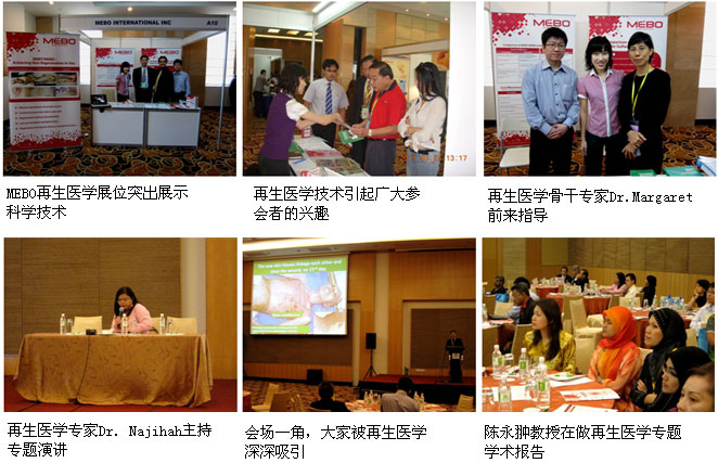 应学会主席Dr. Lay-Hooi Lim和大会委员会的约请,,,,,,,,中国烧伤创疡科技中心临床部主任陈永翀教授应邀出席聚会,,,,,,,,并做了“The Clinical Application of Burns Regenerative Medicine and Therapy in Malaysia and Other Countries”(烧伤再生医学在马来西亚和其它国家的临床应用报告)的再生医学的专题演讲,,,,,,,,向各人先容了中国及其它国家的临床应用情形,,,,,,,,特殊是近2年来,,,,,,,,马来西亚各医院引进和应用再生医学手艺的情形和获得的令人震惊的临床效果,,,,,,,,使各人更周全地相识了再生医学,,,,,,,,增强了各人临床应用的信心,,,,,,,,演讲很受欢迎。。。。。由于这是一次国家级的学术大会,,,,,,,,聚会时代有15家来自欧洲、美国和亚洲的从事医疗器械、创面治疗质料和药物的国际着名企业在现场参展,,,,,,,,其中MEBO再生医学与产品展位是各人最熟悉和最受青睐的,,,,,,,,每位参会的代表都一次或多次来到MEBO展位咨询、相识再生医学手艺,,,,,,,,收到了较好的宣传推广效果。。。。。以下是聚会现场情形: