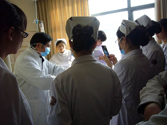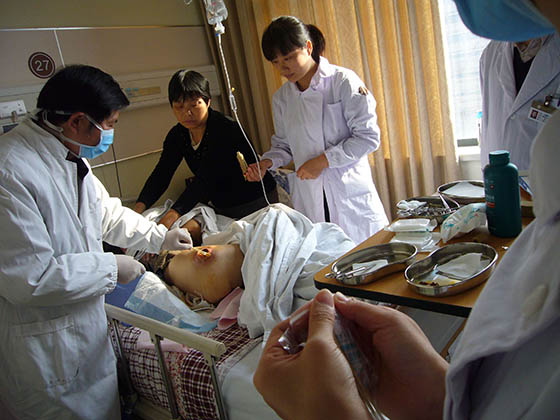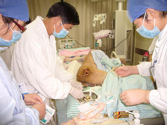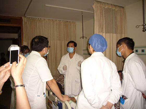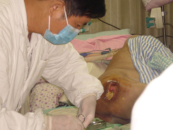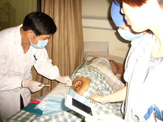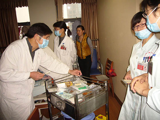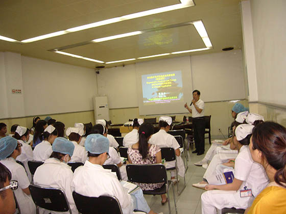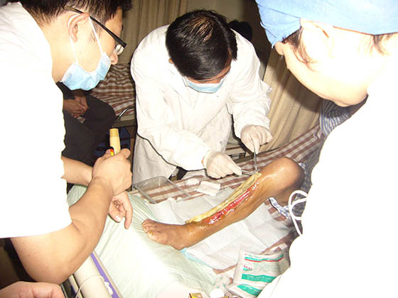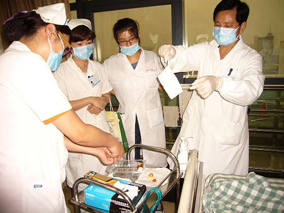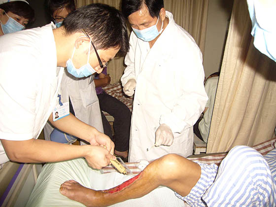 每次在各医院培训竣事后,,,, ,,胡教授都不辞辛勤的应临床约请到医院各科室举行会诊,,,, ,,亲自指导医护职员为病人举行换药治疗。。。。。时代还划分前往浙江医院等多家医院举行了院内的科室培训讲座,,,, ,,并现场指导医护职员为病人换药治疗。。。。。