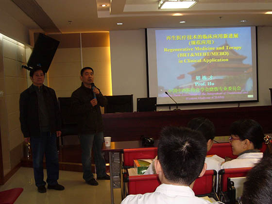 2012年8月及11月6、7日,,,, ,,中国中西医团结学会烧伤专业委员会秘书长、北京烧伤创疡研究所所长、《中国烧伤创疡杂志》副主编胡栋材教授,,,, ,,应邀前往杭州市第一人民医院、晚年病医院(杭州市第一人民医院分院)、杭州市第三人民医院、浙江省中医院、东方医院(浙江省中医院下沙分院)、杭州市中医院、杭州中西医团结医院(红十字会医院)、长广煤山职工医院等多家医院举行再生医疗手艺创面修复培训讲座。。。。。